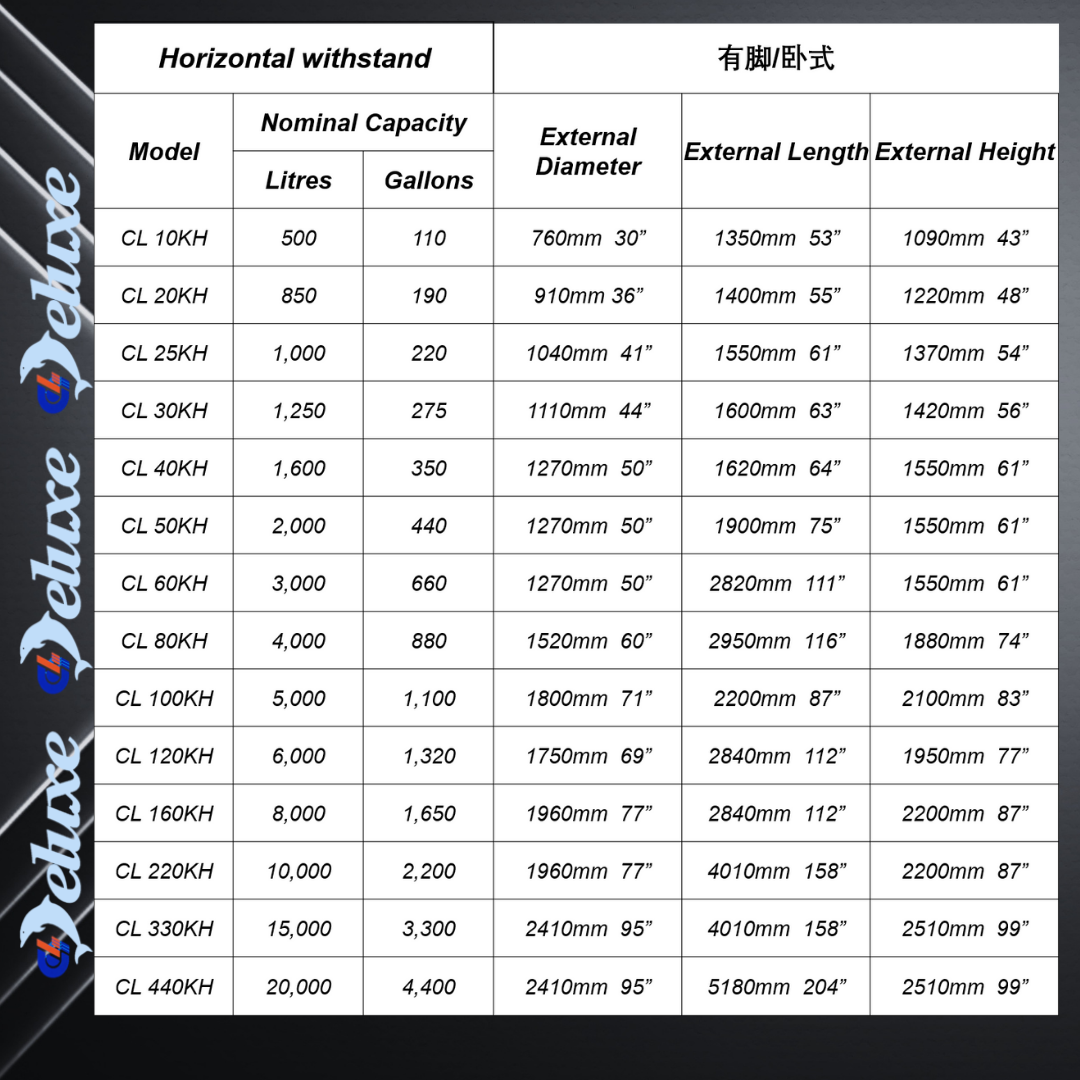 DELUXE Horizontal With Stand Stainless Steel Water Tank