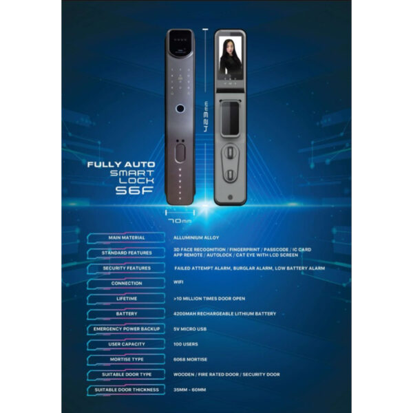 MODEL | SMARTIFY Fully Auto Smart Lock S6F (3D Face Detection) |