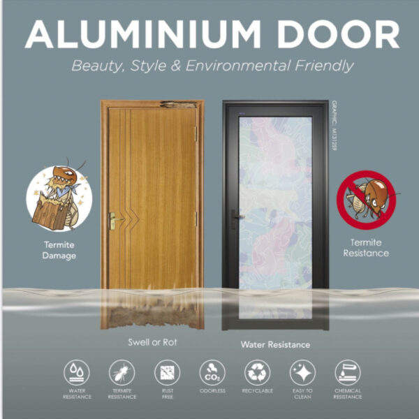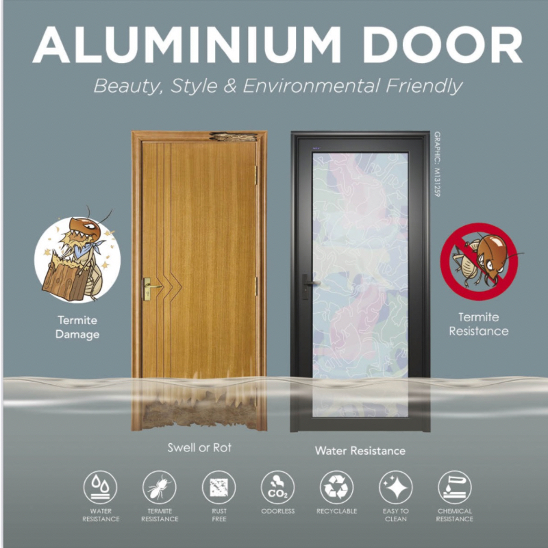• Comes with Aluminium Accessories such as Aluminium Hinges, Aluminium Handle Lock and Aluminium Square Half Dead Bolt