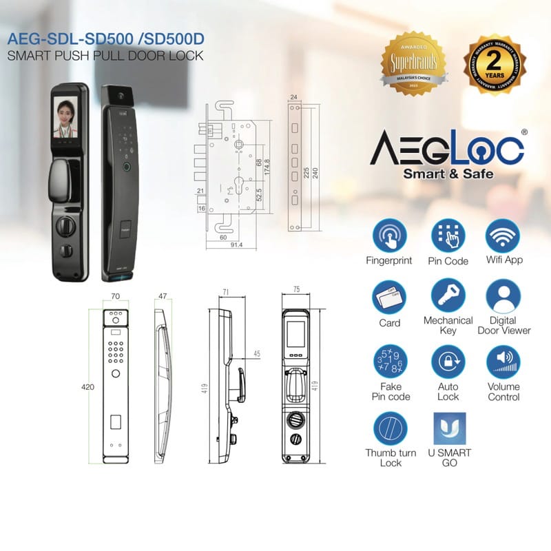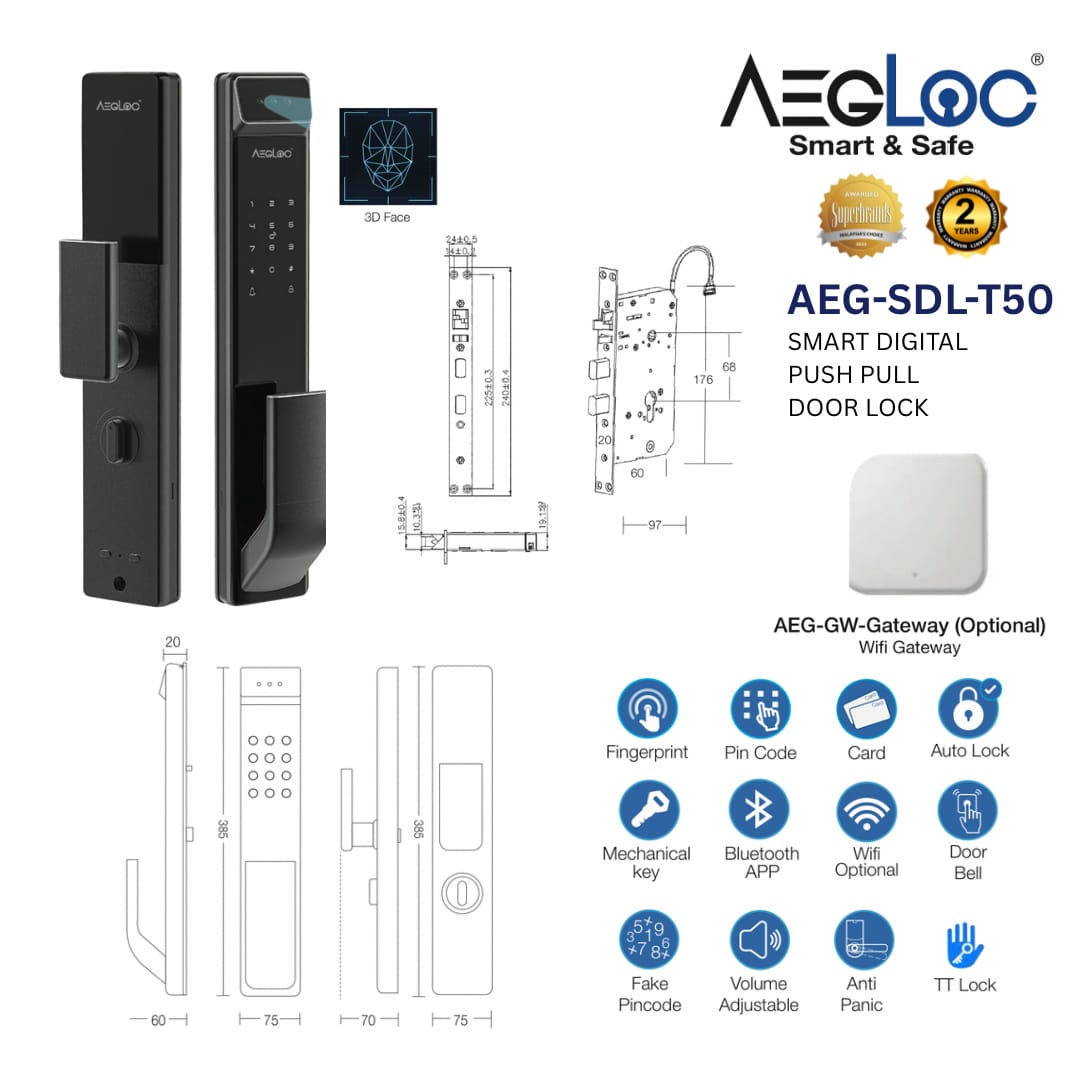 AEGLOC SMART DIGITAL PUSH PULL DOOR LOCK AEG-SDL-T50